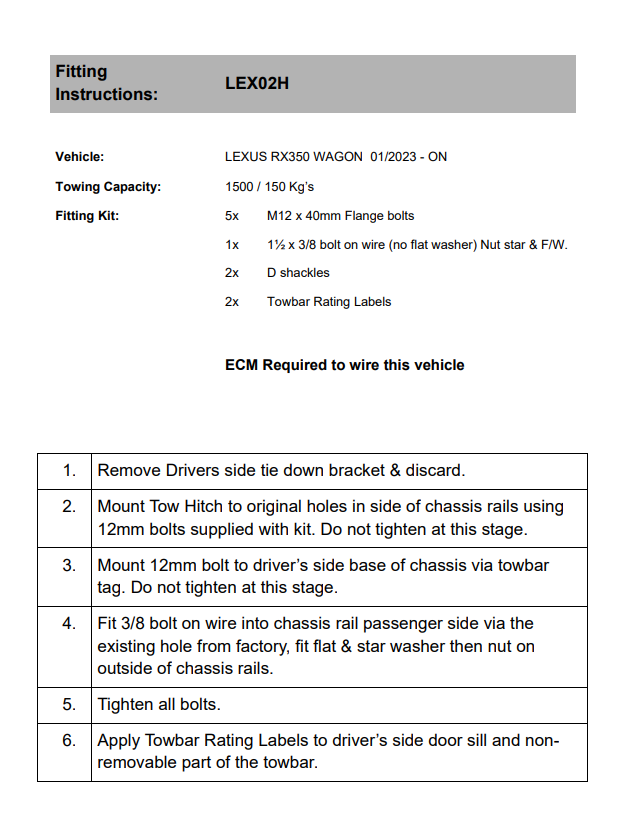 Bta towbar for Lexus RX350 - Heavy Duty