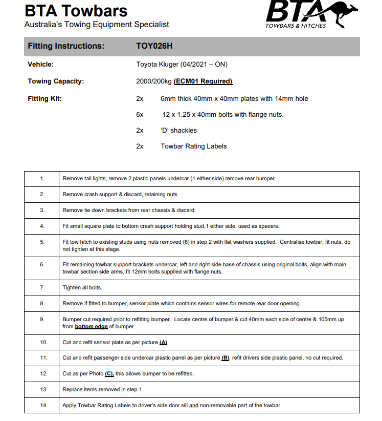 Fitting Instructions: 3-Piece Towbar