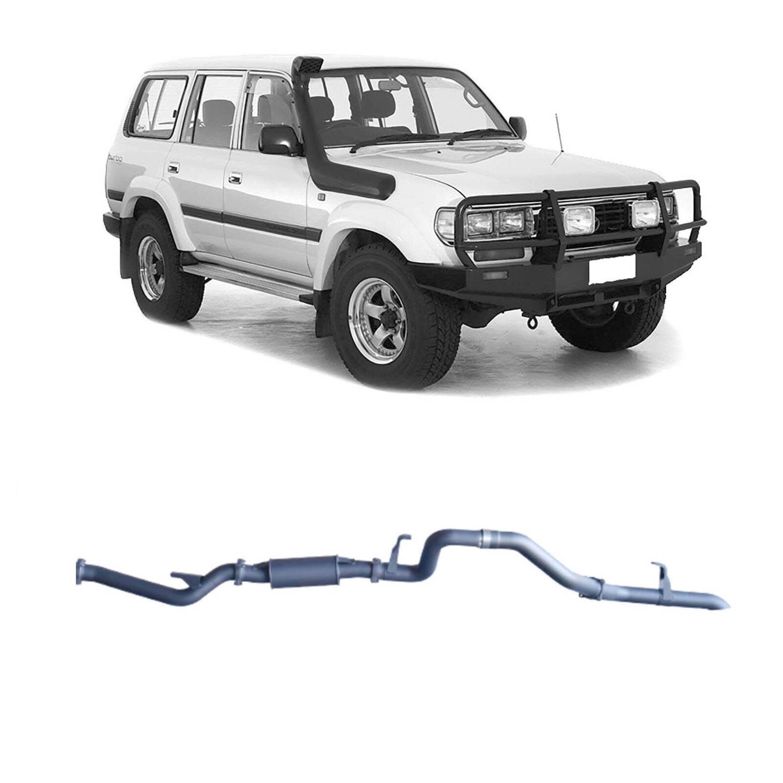 Redback Extreme Duty Exhaust to suit Toyota Landcruiser 80 Series Wagon. This exhaust system routes inside the chassis rail.