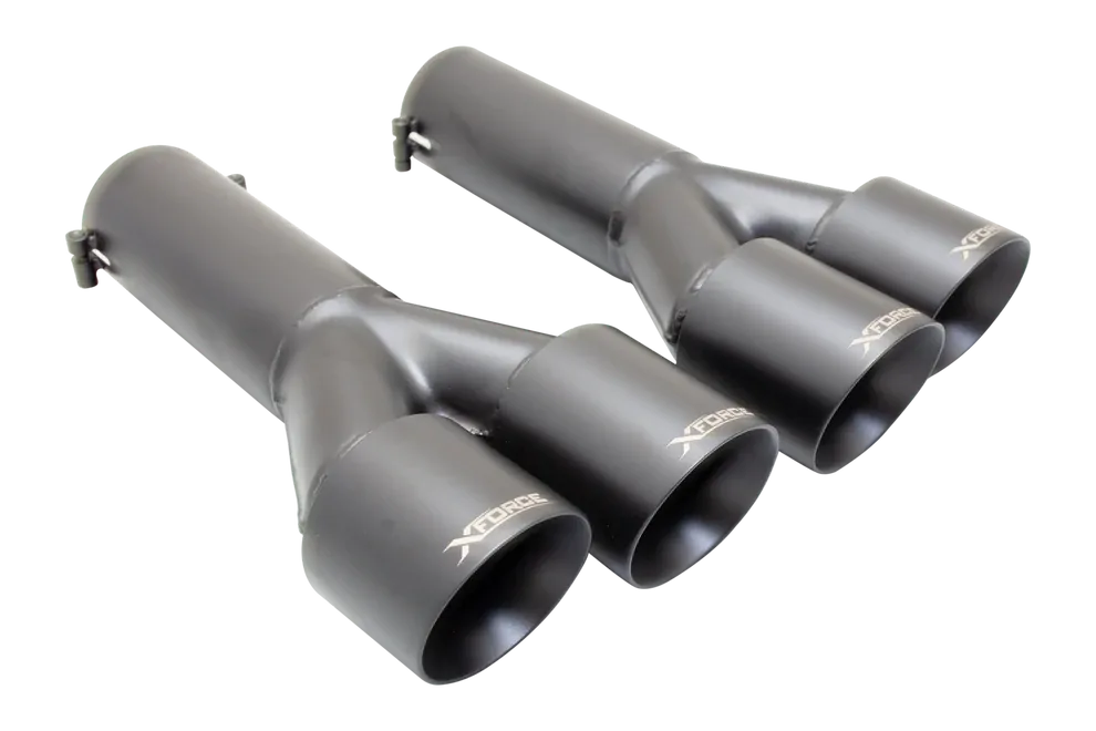 Upgrade your Holden VE & VF V8 Commodore with the Xforce Black Tip Kit. Featuring a sleek matte black finish with the iconic Xforce logo, these tips are designed for both left and right outlets, measuring 3.5" each outlet. Crafted from premium 304 stainless steel, they offer durability and style. The clamp-on design ensures easy installation, but please note they are only compatible with our 7 Series exhaust systems. Enhance your ride with the Xforce Black Tip Kit today!