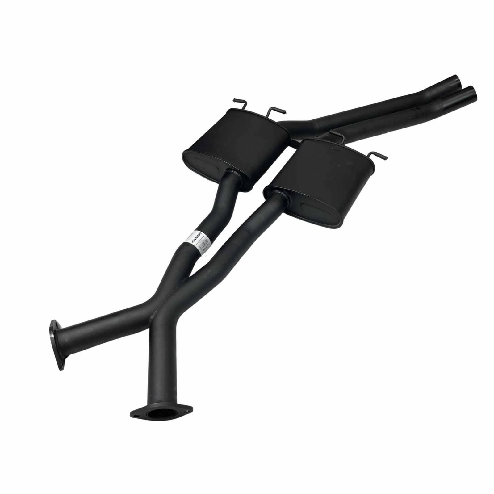 Redback centre mufflers to suit Holden Commodore Sedan VT-VZ Supercharged V6 & 5.7L V8 - 2 1/2" Catback dual pipe front muffler assembly with X-Pipe. Bolts directly onto factory cats for use with redback rear assemblies only.